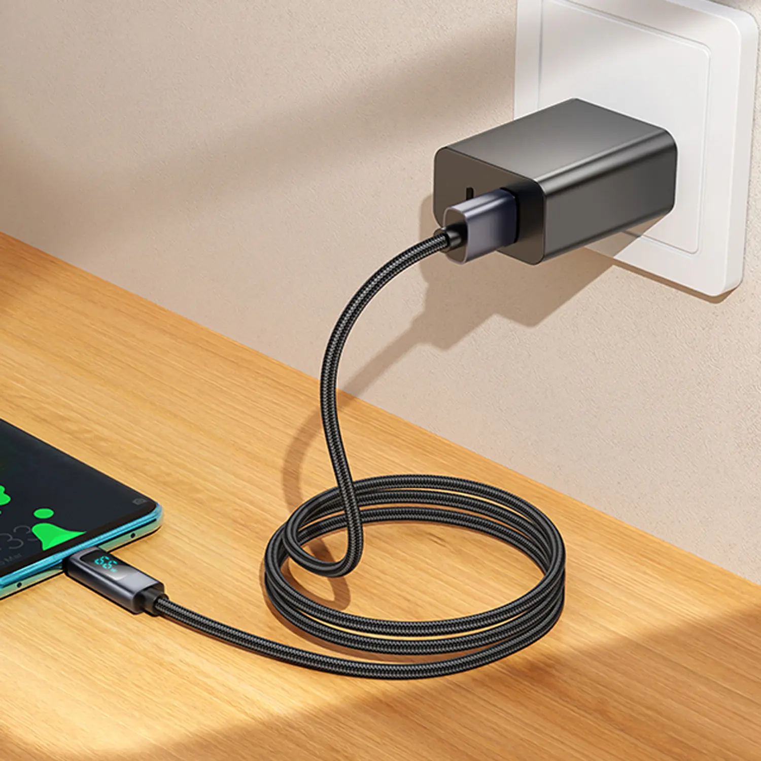 Un cable de alta velocidad y visualización avanzada, ideal para cargar rápida y monitorear tu dispositivo con estilo.